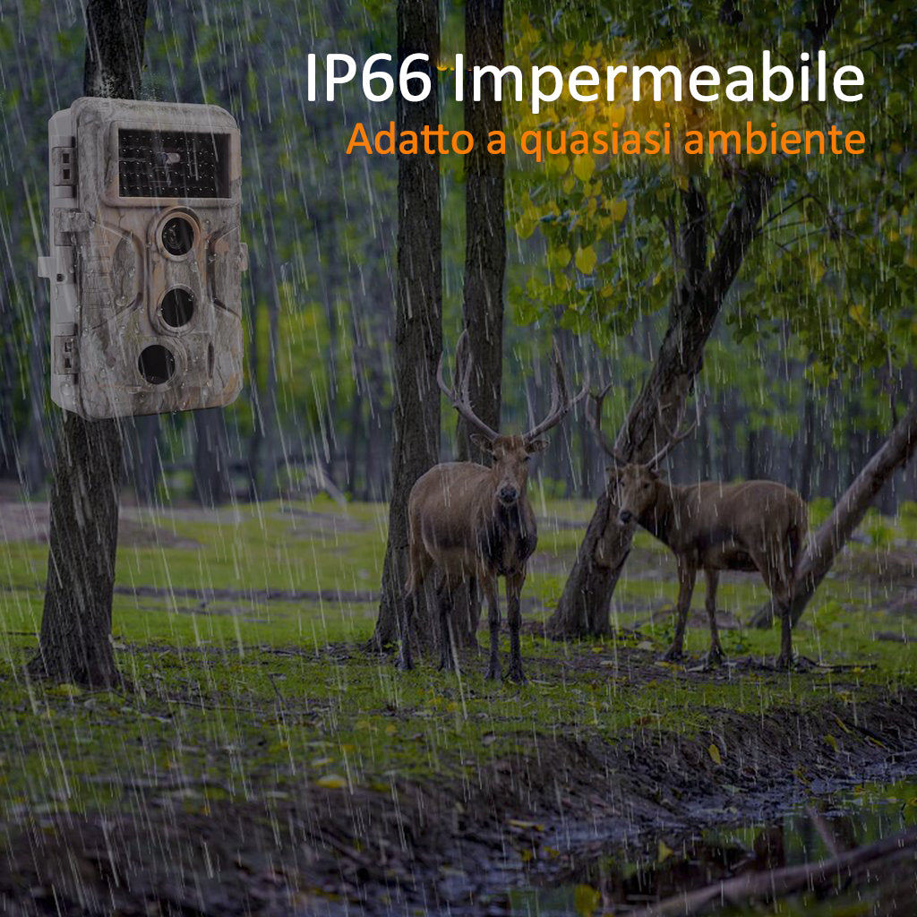 Grazie a un design meccanico affidabile e robusto e a una costruzione impermeabile a livello elevato, questa telecamera di caccia può raggiungere il grado di protezione IP66 (a tenuta di polvere, acqua e polvere) e operare in ambienti duri come il deserto o la foresta pluviale durante tutte le stagioni. Può essere utilizzato per la caccia, la sorveglianza domestica o l'osservazione della fauna selvatica. Questa telecamera consente di impostare una password per proteggerla da utenti non autorizzati.