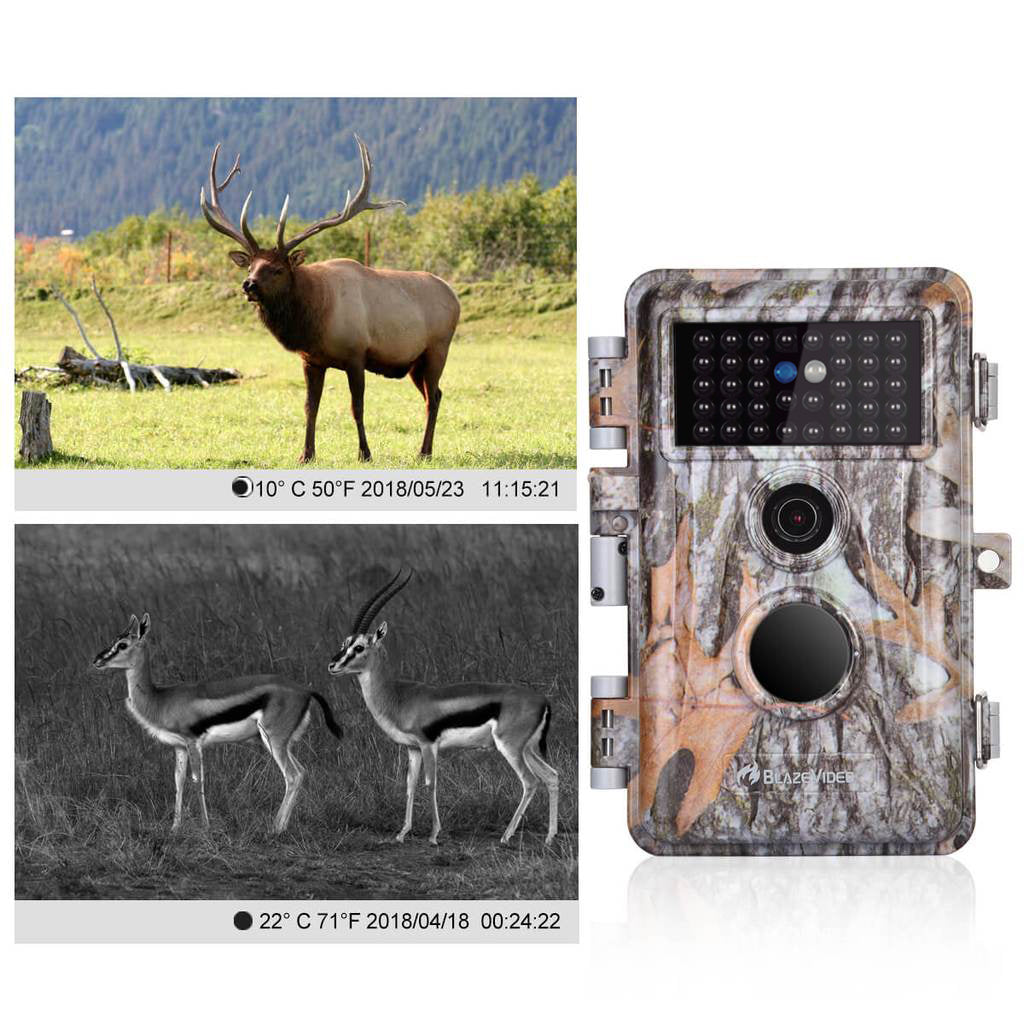 La visione notturna delle nostre fototrappole è molto chiara,può osservare una distanza fino a 75 piedi/22 metri. La fotocamera è dotata di 38 LED a infrarossi ad alta efficienza incorporati, che funzionano come un flash (invisibile ad occhio nudo) e, grazie ai quali,ci permettono di scattare foto o video chiari (in bianco e nero).