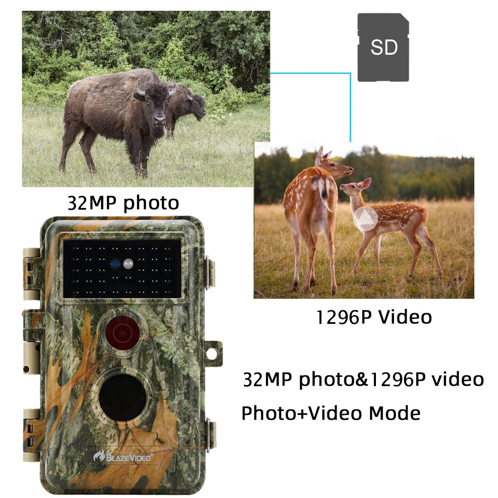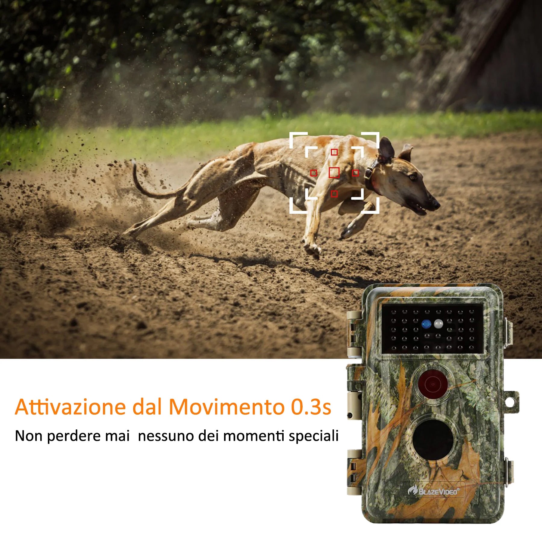 La fototrappola può catturare il momento più prezioso con una velocità di attivazione solo 0.3s e, equipaggiando di un rilevamento del movimento di PIR a 70°, godevi un ampio angolo di visione a 110°.