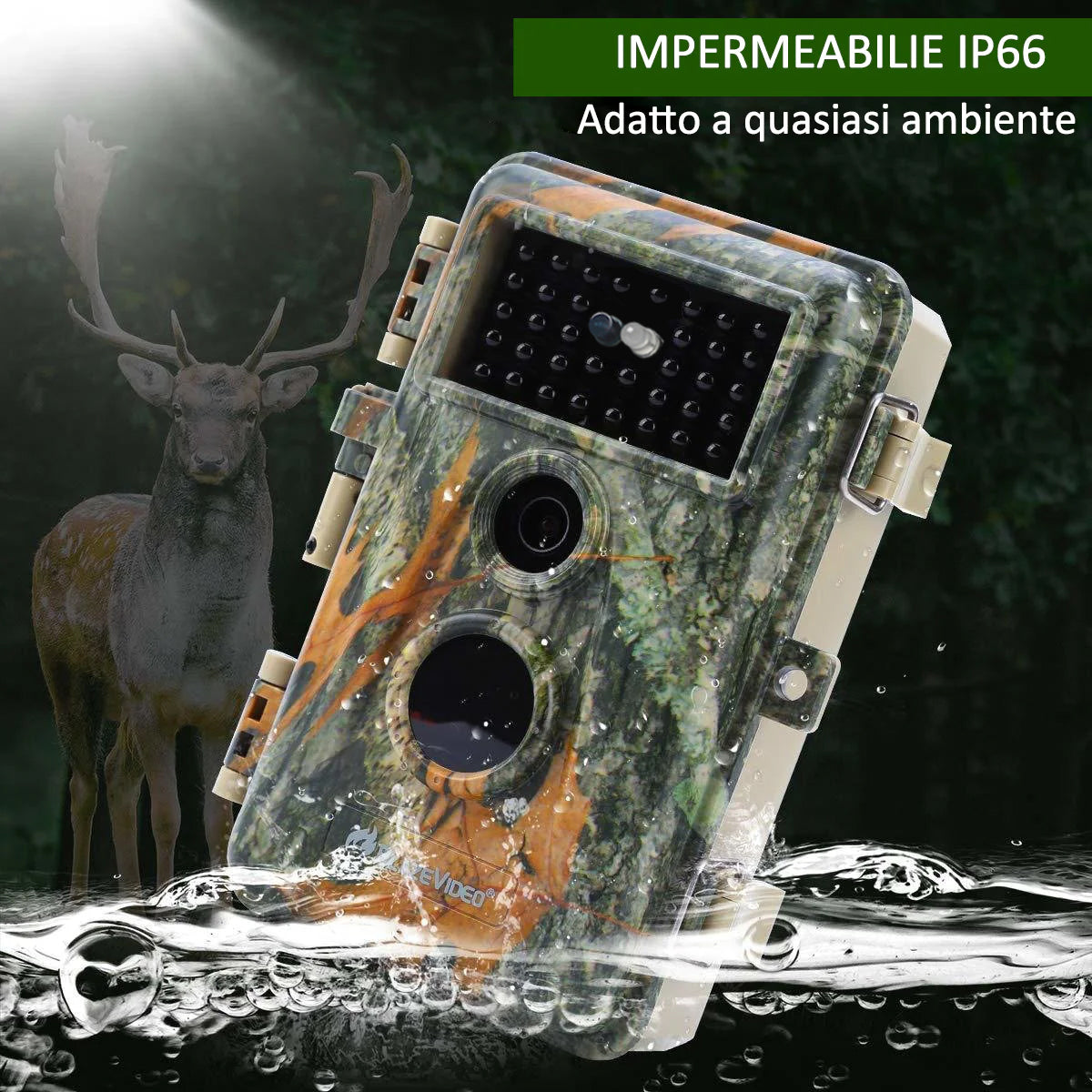 Grazie a un design meccanico affidabile e robusto e a una costruzione impermeabile a livello elevato, questa telecamera di caccia può raggiungere il grado di protezione IP66 (a tenuta di polvere, acqua e polvere) e operare in ambienti duri come il deserto o la foresta pluviale durante tutte le stagioni. Può essere utilizzato per la caccia, la sorveglianza domestica o l'osservazione della fauna selvatica. Questa telecamera consente di impostare una password per proteggerla da utenti non autorizzati.